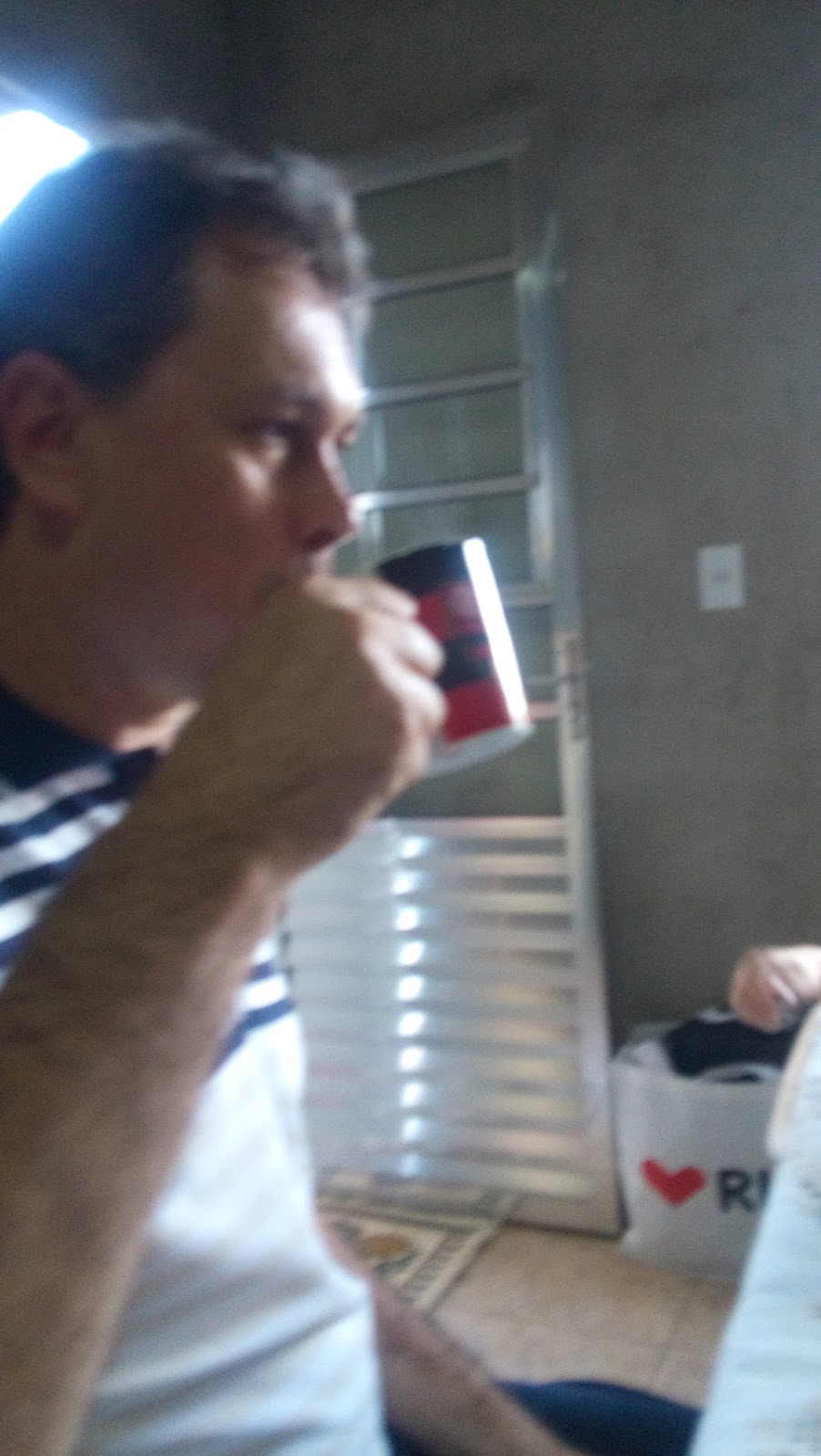 A AMIZADE DEVE ESTAR SEMPRE ACIMA DAS DIFERENÇAS. COMO PROVA DISTO, VLADAS (QUE É ATLETICANO) TOMA CAFÉ NA CANECA DO FLAMENGO DO FRED.